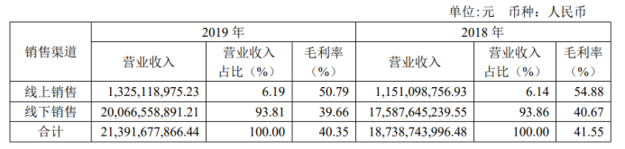 截止2022年末,海澜之家系列的门店总数达到5942家,近6000家门店是什么概念?这个数量要比大陆地区的餐饮连锁龙头麦当劳还要多出500多家。服装零售线下门店比快餐零售开的门店还多,这背后的风险也相当大。2019年,电商已经从互联网已经逐渐转战移动互联网,而海澜之家依旧专注线下,当年线下销售收入达到200亿,占比高达93.81%,线上仅有6.19%;即使线上销售毛利率比线下能高出超过10个点,海澜之家依然选择押重注在线下。