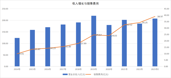总体宣传效果还是有的,但从销售费用增长和营收增长趋势来看,海澜之家的销售投入难免陷入边际效益递减的趋势中。换言之,即使再频繁且大量的投入代言人、铺设终端渠道还是置入综艺游戏,带来的销售增长也终将有限。