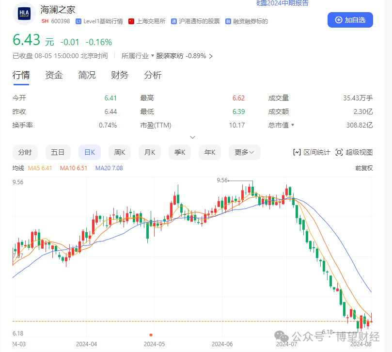 从近两年来看,海澜之家从2021年开始,加大了分红的额度,三年时间分红近70亿元,很符合从2022年以来A股长期震荡中资金的追捧,海澜之家也从2022年底的3元股价上涨至7月前最高的9元左右,不到两年时间上涨了三倍,而公司业绩虽有增长,但距离安踏等行业巨头的增长相去甚远,这种长期和A股走势相反的趋势伴随着近期大盘指数的连续下跌也有一定的合理性。但问题是,这次下跌海澜之家自身的原因又有多大呢?展望未来,海澜之家是否还具备投资机会?