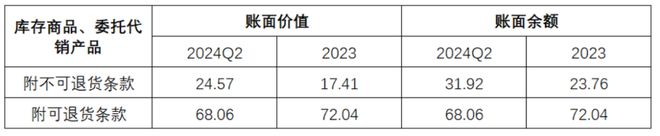 截止2024Q2,海澜之家账面存货金额共95.53亿元,成品服饰中附可退货条款存货(减值风险很低)68.06亿,不可退货存货(减值风险偏高)24.57亿元。而2023年底海澜之家账面存货金额93.37亿元,其中可退货存货72.05亿元,不可退货存货17.4亿元。