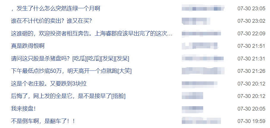 投资者自然难言淡定,一度猜测纷纷。股吧中不乏种种吐槽声“发生了什么怎么突然连绿一个月啊”、“谁在不计代价的卖出?谁又在买?”、“真是跌得恨啊”、“请问这只是杀猪盘吗?”......