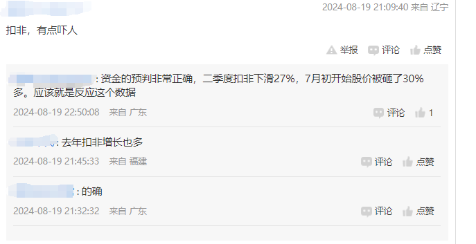 消息一出,投资者又难淡定了。“果然是负增长,严重内幕泄露”、“资金的预判非常正确,二季度扣非下滑27%,7月初开始股价被砸了30%多,应该就是反应这个数据”“单季度净利下跌14%,扣非下跌24%,难怪走成这样,机构早知道了”......