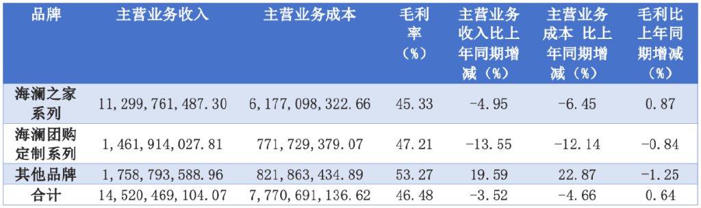 从收入结构来看,2024年上半年,海澜之家系列收入占比78.43%,海澜团购定制系列收入占比9.55%。这两项业务的营收在今年前三季度分别下滑4.95%、13.55%。