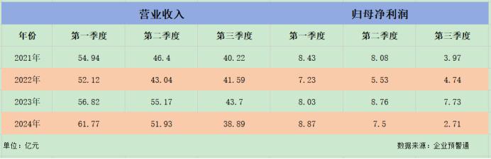 如海澜之家2024年第二、第三季度的营收分别为51.93亿元、38.89亿元,不仅环比在下滑,同比2023年度的55.17亿元、43.7亿元也下滑不少;归母净利润同样也是如此,同期的归母净利润分别为7.5亿元、2.71亿元,环比也在大幅下滑,同比2023年的8.76亿元、7.73亿元更是下滑了很多。