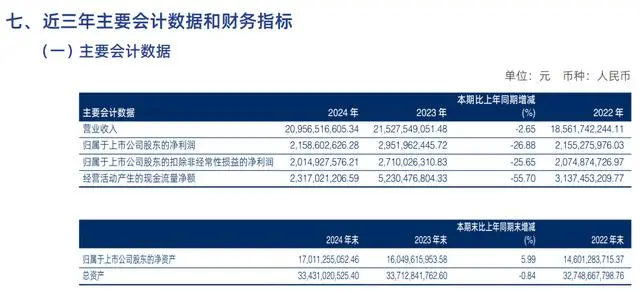 年报显示,报告期末,公司经营活动产生的现金流量净额为2.32亿元,较2023年同期下降55.70%,主要为本期销售商品收到的现金减少及购买商品支付的现金增加所致。