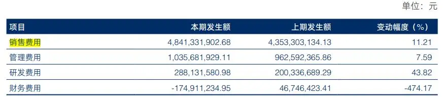 压缩公司利润空间的,还有巨额销售费用。公开资料显示,海澜之家销售费用近年来持续攀升,2020年~2024年,公司各年度销售费用分别为24.03亿元、32.52亿元、34.25亿元、43.53亿元、48.41亿元。短短5年,销售费用已“翻倍”。