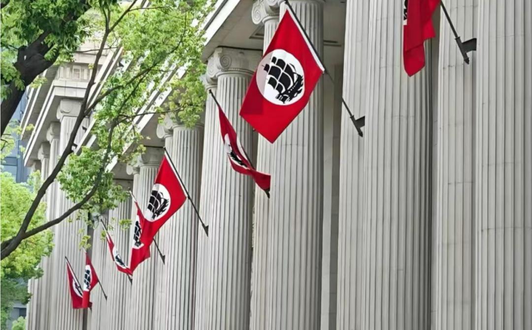 近日海澜之家总部大楼因独特的建筑风格再次引爆网络。这座被网友戏称为“XX总部复制款”的建筑,以其庄严的欧式设计、醒目的三色旗帜和神似历史场景的安保制服,成功登上热搜,引发网友热议。