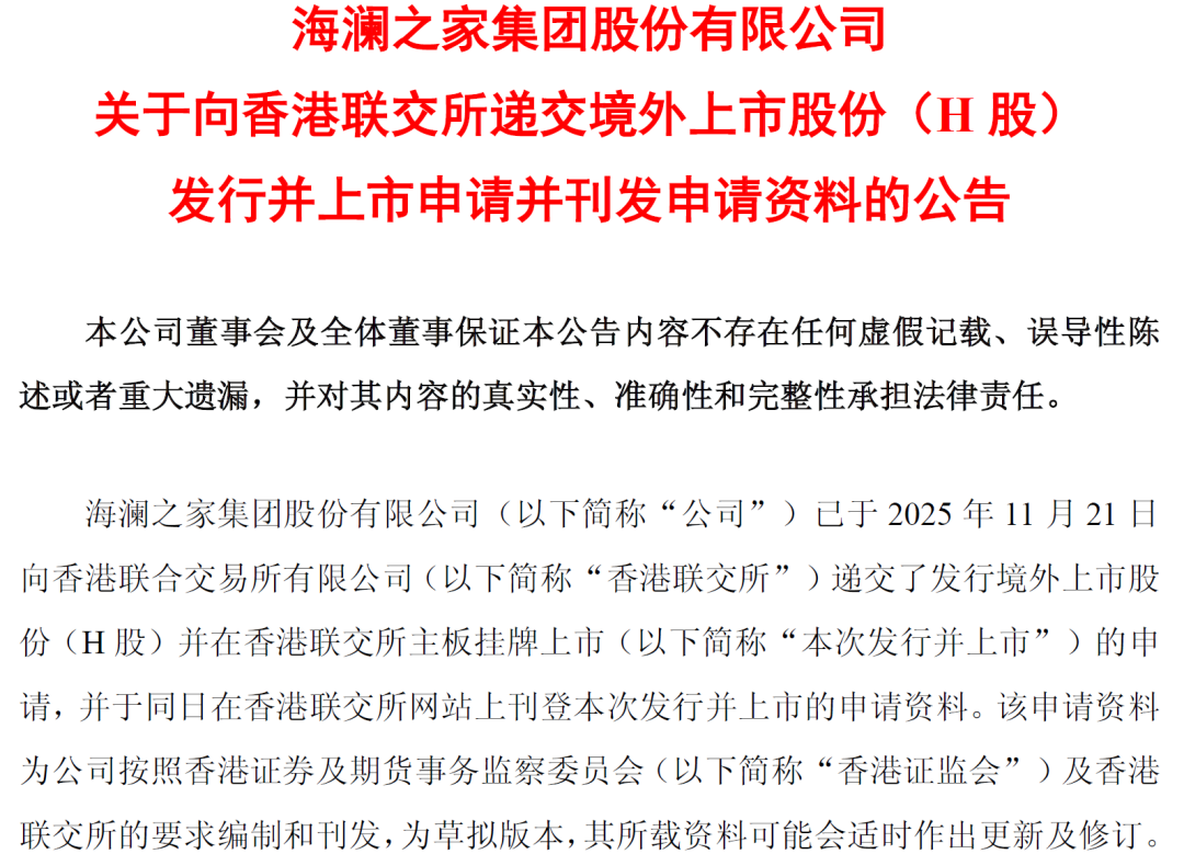 2025年11月,海澜之家正式向港交所递交招股书,拟在香港主板上市,华泰国际为其独家保荐人。