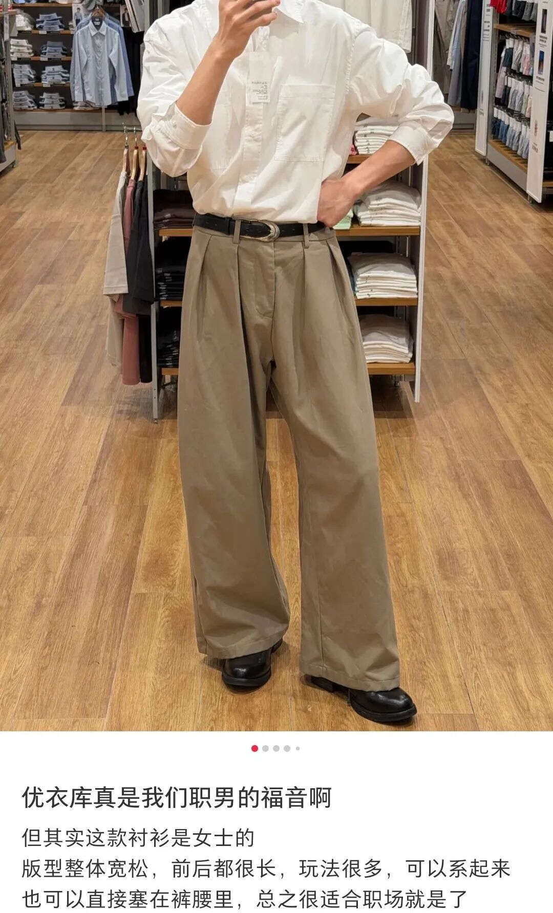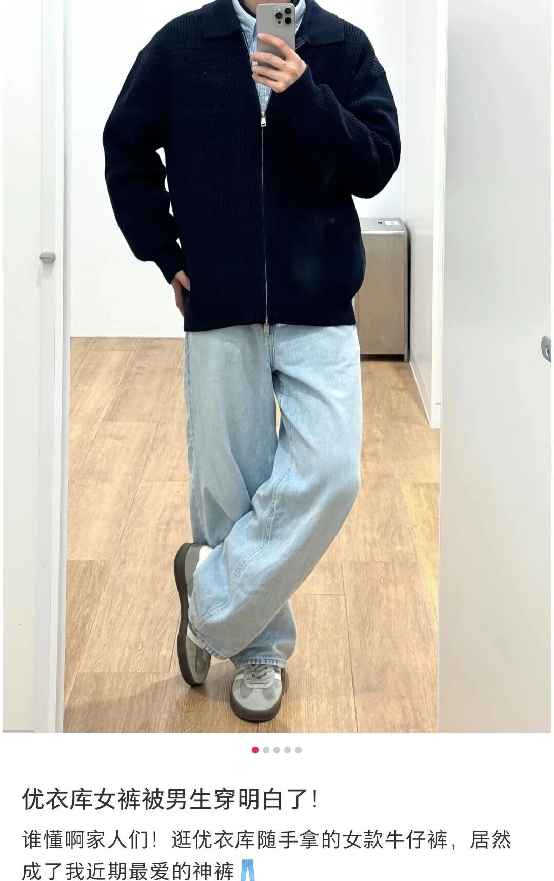直到某个下午,他在优衣库女装区拎起了一条高腰直筒裤。原本只是看版型差不多,想要试试看,没想到效果却出奇惊艳。和普遍采用中低腰设计的男裤不同,女裤的高腰剪裁巧妙提升了腰线,再配合后腰处位置更高的口袋设计,最大化地修饰了身材比例。原本80cm的腿长,看上去足有一米二。