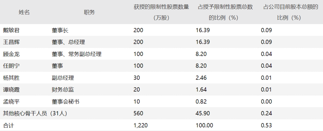 12月16日收盘后,红豆股份(600400.SH)披露了2021年限制性股票激励计划(草案),拟以每股2.07元向38名激励对象,包括董事、高级管理人员及对公司业绩增长目标达成和未来发展有重要影响的其他骨干人员,授予1220万股公司限制性股票,约占公司目前股本总额的0.53%。