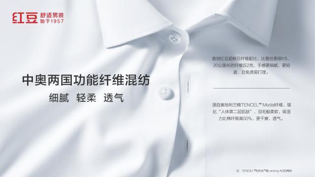 源自奥地利的兰精TENCEL Model纤维,堪比“人体第二层肌肤”,吸湿力比棉纤维高50%,柔软、干爽又透气;同时,由于采用了“红豆首创超细旦纤维配比”,这件衬衫可机洗,不用烫。中奥两国原料的黄金配比,让这款衬衫的面料有了超强的亲肤性、细腻度和轻盈感,给人以“0感”体验。
