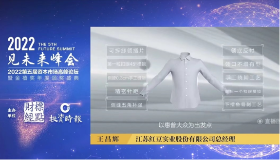 创新实力圈粉,国潮赢得未来。12月22日,由《投资时报》社与标点财经研究院联合主办的“见未来?2022第五届资本市场高峰论坛暨金禧奖年度颁奖盛典”隆重召开。经过《投资时报》社、标点财经研究院及各方评委严谨、审慎评判,红豆股份(600400)作为中国服装行业首个聚焦舒适赛道的男装品牌,以舒适引爆行业变革,获评金禧奖?2022国潮影响力品牌奖。