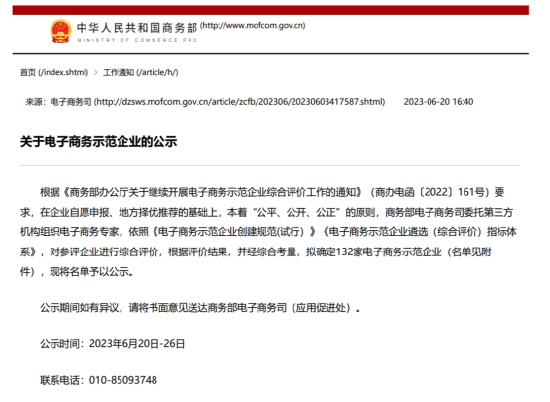 商务部于2010年起发起了电子商务示范企业创建活动,鼓励优秀电子商务企业在促进我国电子商务高质量发展,构建新发展格局中做好示范引领、实现更大作为。此次纳入认定名单的,包含京东、快手、东方优选等知名企业。