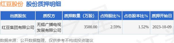 红豆股份(600400)10月10日公开信息显示,股东红豆集团有限公司向无锡广播电视发展有限公司合计质押3500.0万股,占总股本1.52%。质押详情见下表:
