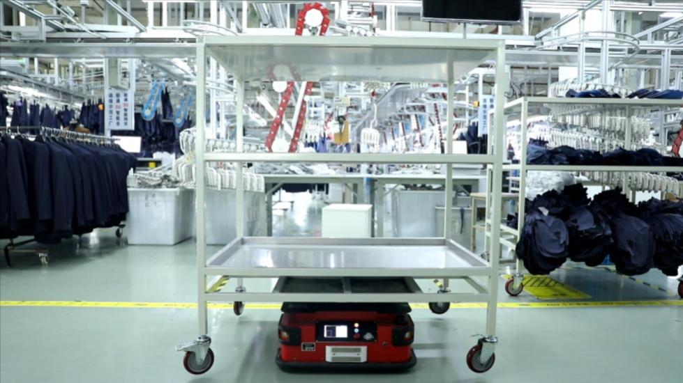 走进红豆男装5G全连接工厂,AGV小车穿梭在车间内行走自如,衣服在有序流转的吊挂线上主动“找”人,操作台能根据工人不良率自动停机并进行视频培训……与传统纺织服装生产线不同,这里打通了业务全链路,通过零售端3D量体仓、用户数据、生产端缝纫机、裁床、AGV等要素的全连接,支撑起了一条完整的生产线。