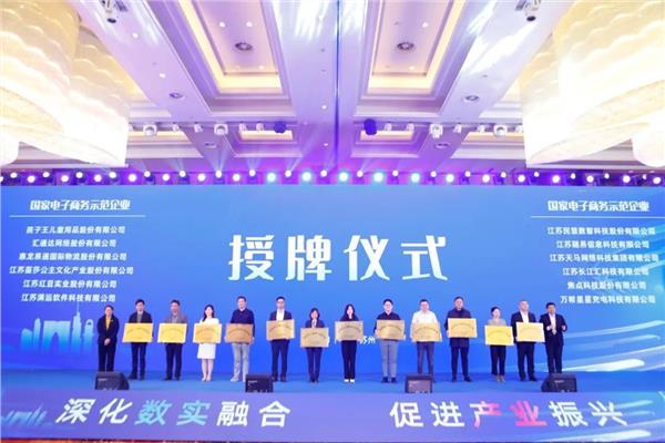11月23日,由江苏省商务厅、苏州市政府主办的2023中国江苏电子商务大会在江苏昆山举办。以“深化数实融合促进产业振兴”为主题,会上共12家江苏企业获“国家电子商务示范企业”授牌,红豆股份凭借在服装零售领域的创新优势和行业影响,名列其中。