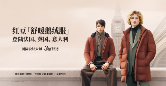 当下热销的“红豆舒暖鹅绒服”,也是红豆股份优质产品力的见证。一改传统功能羽绒服面料过硬不舒适、摩擦噪音等痛点,“红豆舒暖鹅绒服”突破了传统羽绒服的穿着场景局限,白鹅绒、超柔面料、亲肤里料的结合,带来超越3倍的舒适触感。以其独特的设计和卓越的品质,红豆“舒暖鹅绒服”登陆法国、英国、意大利三大时尚高地,并征服了海外专业人士与时尚买手,迅速进军伦敦邦德街买手店。