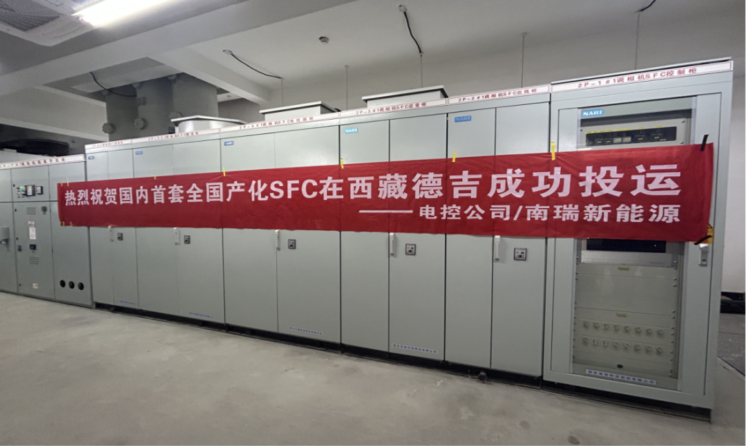 西藏德吉110千伏开关站位于那曲市色尼区,其调相机工程是青藏直流二期扩建工程的配套调相机工程,也是西藏电力迎峰度冬电力保供重点项目。调相机工程投入运行后,将提升区域电网安全稳定性,保障电力供应。其中,静止变频启动系统(SFC)作为调相机工程的关键核心装备,可以高效拖动机组从静止状态升速至设定转速,具备静止启动、快速再启动、定速运行等功能,可实现机组的无极调速和平稳启动,具有效率高、控制性能好、启动迅速等特点,是推动构建清洁低碳安全高效的能源体系下保证电网稳定性、安全性的重要技术。