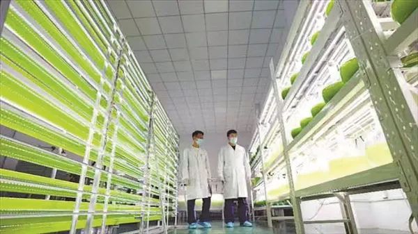 微藻属于一种原核蓝藻,蛋白质含量达55%至70%,氨基酸含量高,有激活免疫系统、改善心血管功能等保健作用。藻类可常年高速生长,其光合效率高达5%,也是吸收二氧化碳最直接的一种方式。微藻碳减排技术相当于森林碳中和能力的10至50倍,相比于传统燃煤电厂烟气减排技术,微藻固碳减排技术还具有工艺设备简单、操作方便和绿色环保等优势。