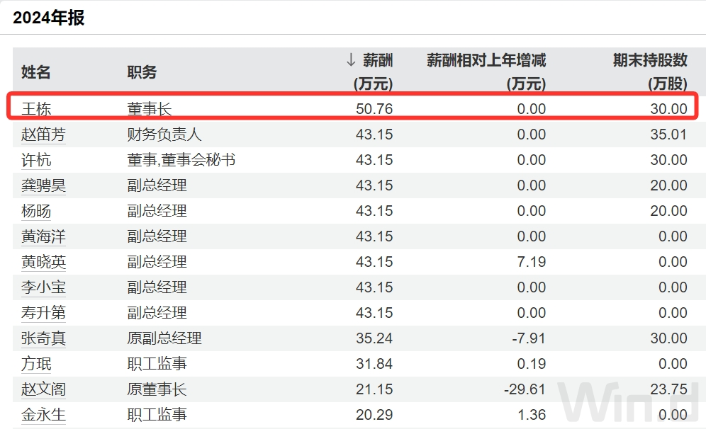 这也使得王栋成为小商品城上市后历任董事长任职时间最短的一位。2024年,王栋的薪酬为50.8万元,为公司薪酬最高的高层,其他多位高管薪酬为43万元。此外,王栋还持有30万股,市值近600万元。