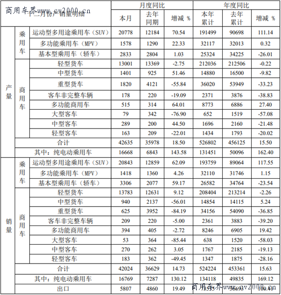 2022年1月7日,安徽江淮汽车集团股份有限公司截至 2021 年 12月份产销快报数据快报。2021年江淮汽车累计销售各类汽车524224辆,同比增幅15.63%;其中商用车轻型货车累计销售208404辆,同比下降2.26%;中型货车累计销售14854辆,同比增幅5.24%;重型货车累计销售34156辆,同比下降36.85%;客车非完整车辆累计销售2361辆,同比下降39.20%;多功能商用车累计销售8246辆,同比增幅19.42%;大型客车累计销售638辆,同比下降58.03%;中型客车累计销售1767辆,同比下降19.13%;轻型客车累计销售1347辆,同比下降28.16%。