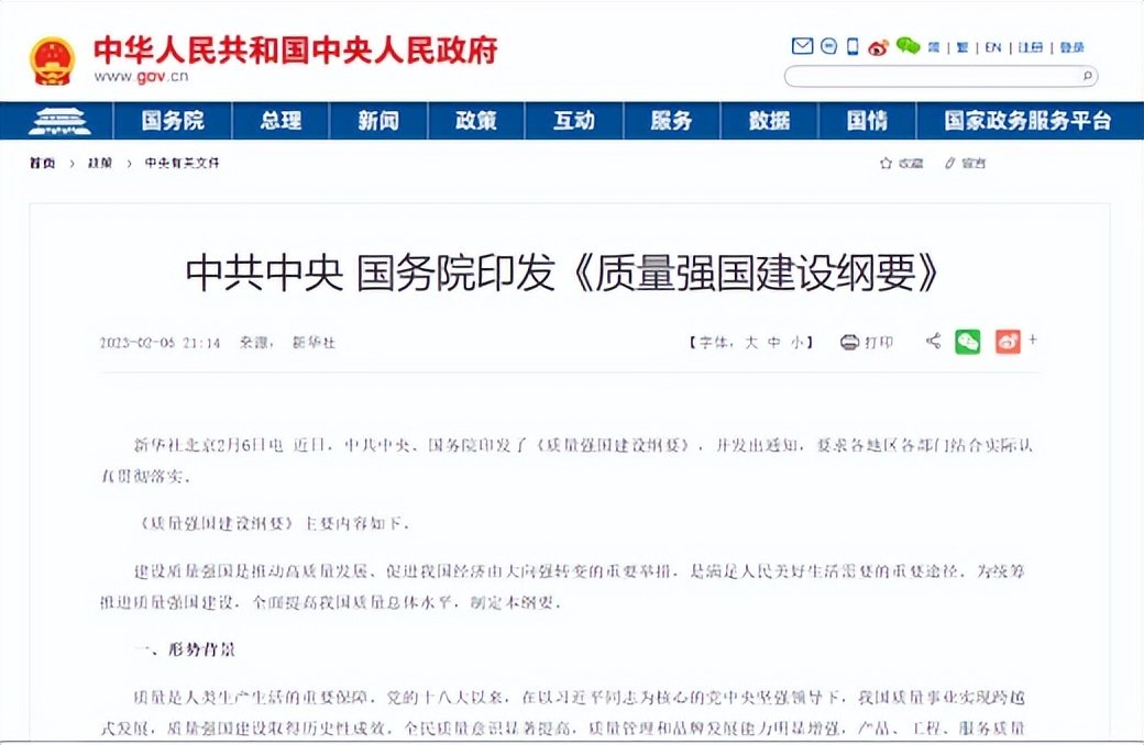 《质量强国建设纲要》