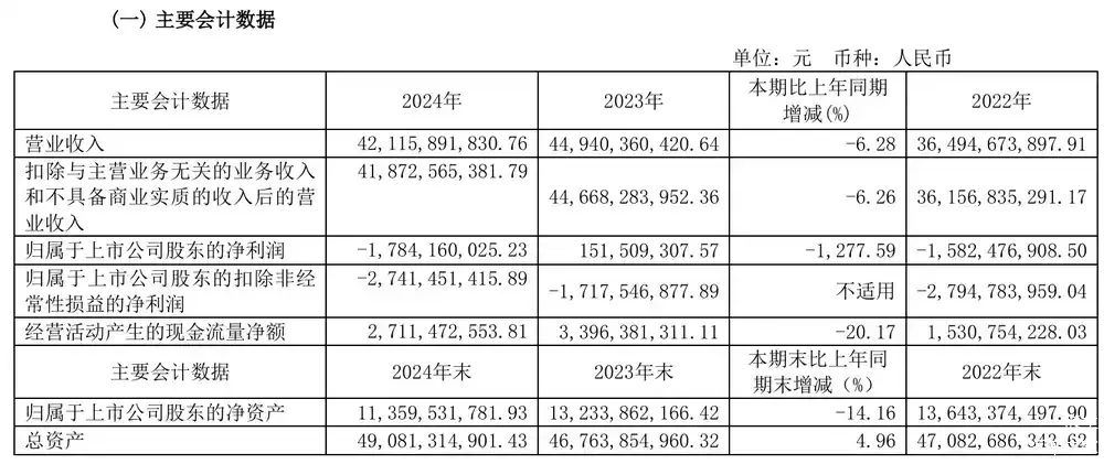 2024年财报显示,江淮汽车营业收入为421.16亿元,同比减少6.28%;归属于上市公司股东的净亏损为17.84亿元,同比下滑1277.59%,由盈转亏,并且创下上市以来的最大亏损;归属于上市公司股东的扣除非经常性损益的净亏损则高达27.41亿元。