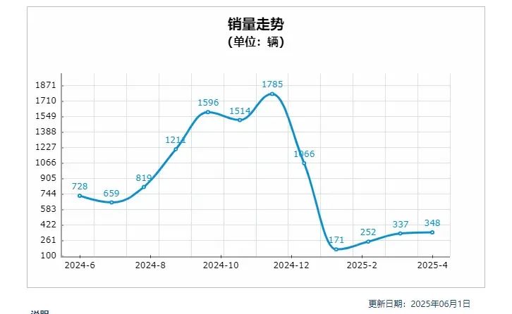 然而,其市场表现不佳,2025年4月销量仅300多辆。