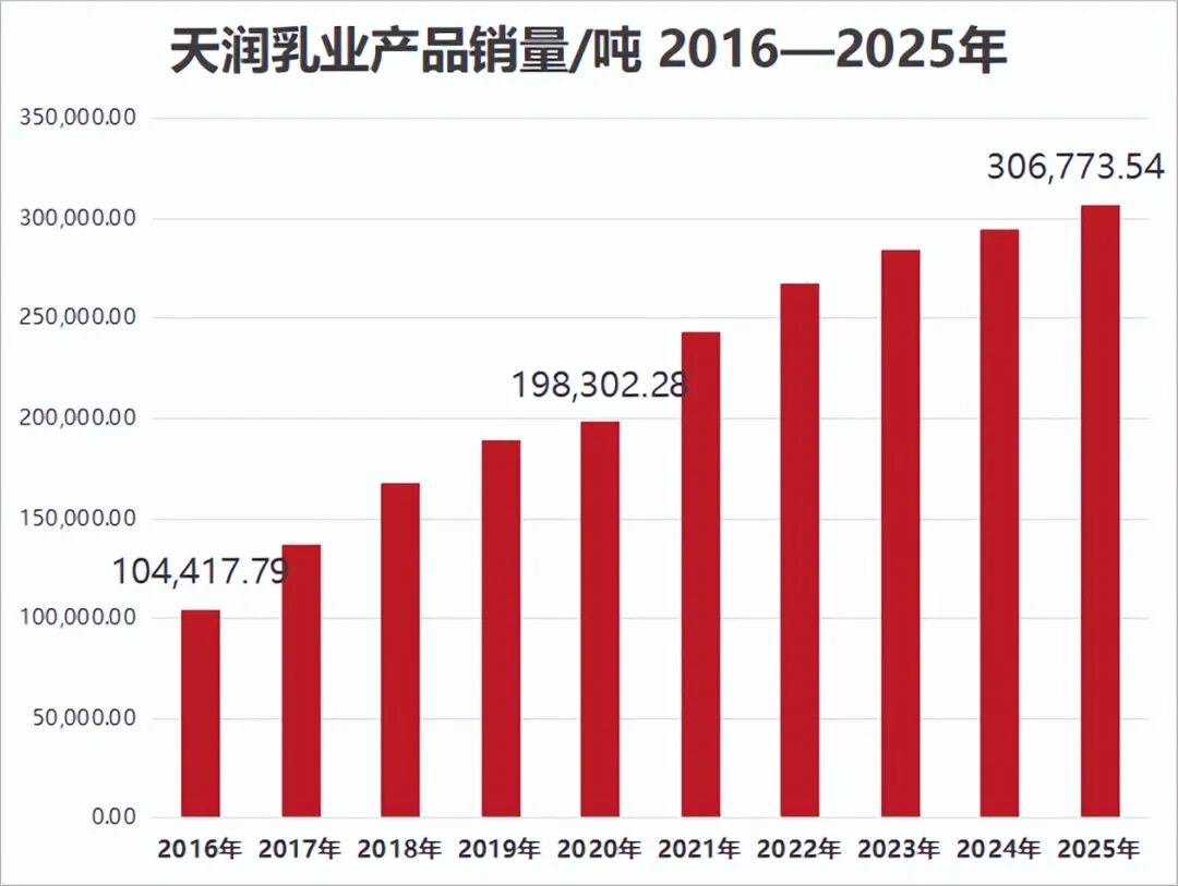 2025年天润乳业生产量和销售量超过30万吨,且销售量同比增长4.23%;从过去10年的数据看,公司销量数据每5年翻一番,实现了从10万吨到20万吨再到30万吨的连续增长。