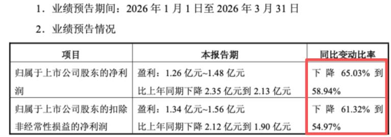 4月10日晚间,国药现代(600420.SH)发布2026年第一季度业绩预告,预计一季度归母净利润为1.26亿元至1.48亿元,同比下降65.03%至58.94%,扣非净利润降幅61.32%到54.97%。这意味着,这家老牌医药国企的季度盈利遭遇了“腰斩”式的下滑。