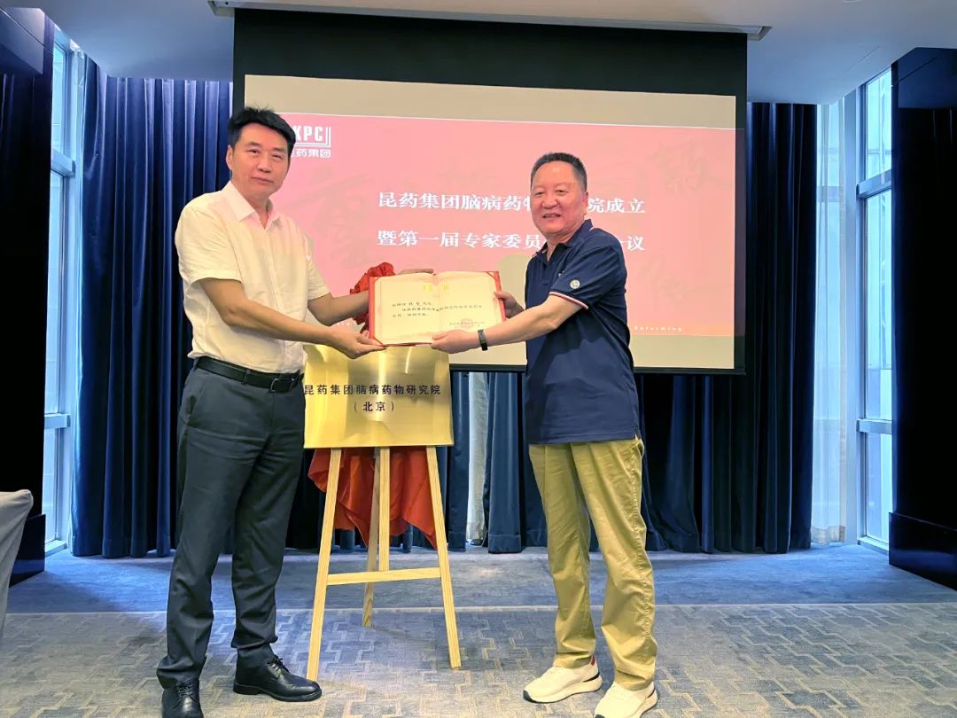 △钟祥刚总裁与田金洲院士共同为昆药脑病研究院成立揭牌。