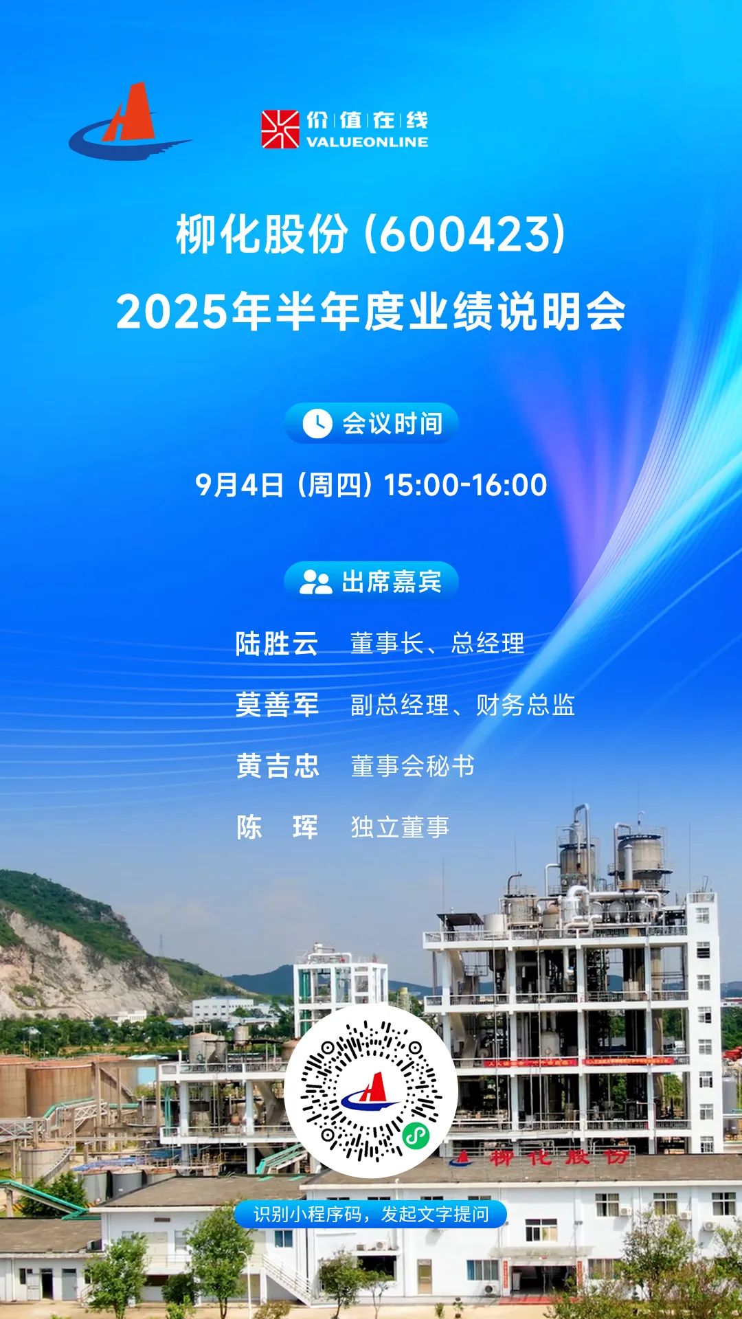 柳化股份2025年半年度业绩说明会预告