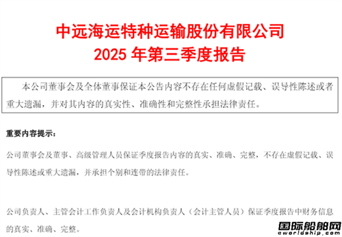 10月23日,中远海运特种运输股份有限公司发布2025年第三季度报告。
