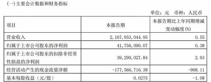 三元股份的2023年一季报显示,第一季度实现营业收入21.68亿元,和上年同期相比略增0.55%,归属于上市公司股东的净利润为4175.61万元,同比增0.38%;营业收入和净利润均停止下滑。