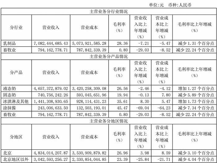 2022年,三元股份的液态奶系列产品实现营业收入46.57亿元,同比减少2.46%;固态奶系列产品实现营业收入7.41亿元,同比减少0.13%;冰淇淋及其他系列产品实现营业收入14.41亿元,同比增长8.30%。