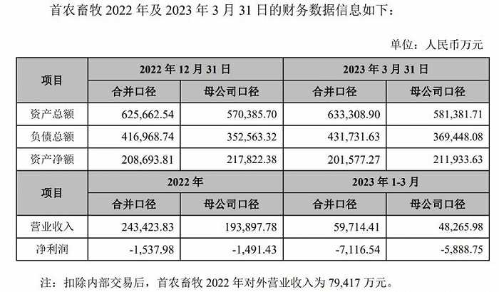 首农畜牧主要从事奶牛养殖与育种等业务,2022年营业收入为24.34亿元,但是净利润为-1537.98万元,2023年1-3月又出现了7116.54万元的亏损。