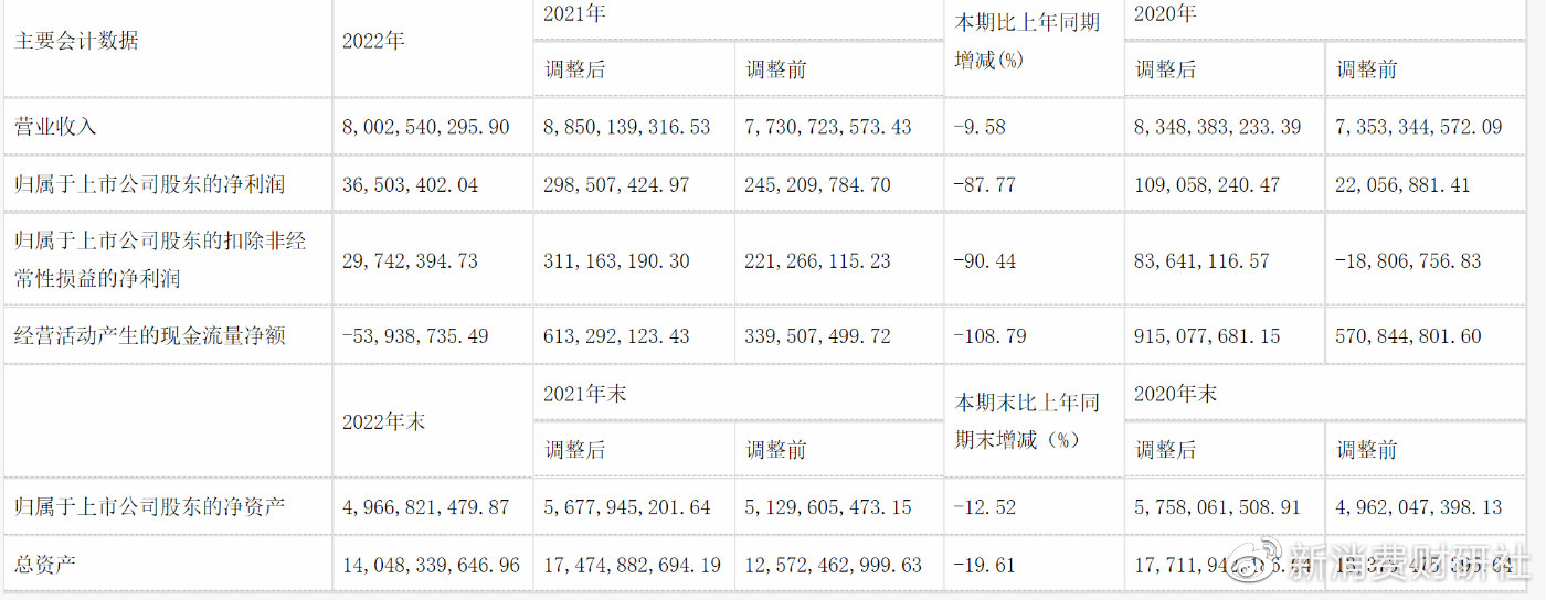 近日,三元股份(600429.SH)发布了2022年财报。财报显示,公司营收和净利润双降,归母净利润同比下滑近9成,让投资者大失所望。