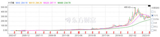 截至8月23日收盘,片仔癀股价报收272.22元,跌2.67%,总市值1642亿元,较之前的高点已跌去近1400亿。