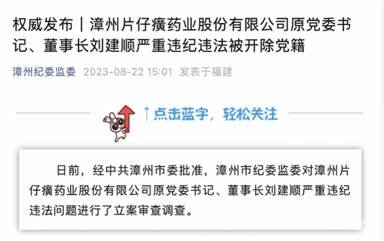 医药反腐如火如荼,“药茅”片仔癀原董事长被开除党籍调查!