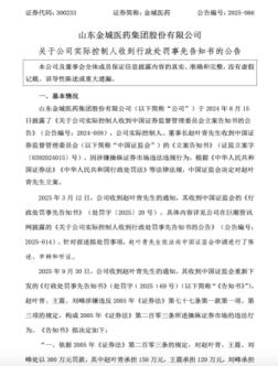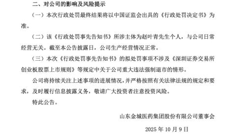 《山东金城医药集团股份有限公司关于公司实际控制人收到行政处罚事先告知书的公告》截图