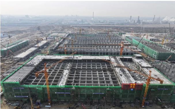 11月7日,内蒙古通威硅能源20万吨高纯晶硅项目一标段最大单体后处理装置主体结构全面封顶。