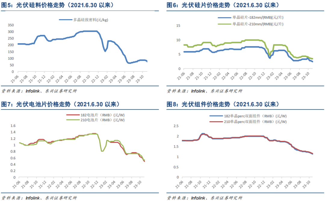 但进入2023年,此前新建的产能逐渐投产,供需关系改善,硅料价格也逐渐走低。