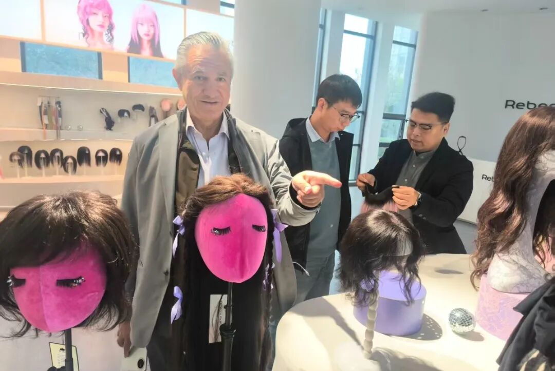 在瑞贝卡公司相关负责人的陪同下,代表团首先参观了企业展厅,详细了解了瑞贝卡的发展历程、产业布局、全球市场拓展以及技术创新情况。随后,代表团深入生产车间,实地观摩了假发制作的全流程工艺,对瑞贝卡精湛的制造工艺、严格的质量管控体系以及给予高度评价。