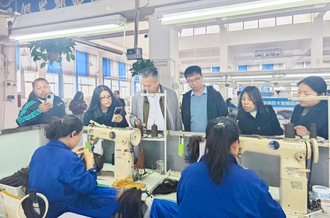 2025年11月11日,墨西哥工农革命联合会代表团团长萨利姆·卡尔巴赫·纳瓦罗率团一行6人莅临瑞贝卡公司,参观公司展厅及生产车间,深入了解企业在发制品生产及国际化发展方面的经验与成果。