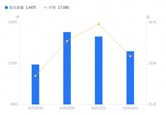 4月10日消息,数据显示,截至2025年12月31日,国机通用A股股东总户数为1.72万户,较上期(2025年9月30日)减少868户,降幅4.80%。公司最新A股总股本为1.46亿股,其中流通A股1.46亿股,户均持有流通A股数量为8498.57股,较上期增加407.62股,增幅5.04%;户均持流通A股市值15.58万元,较上期增加1.28万元,增幅8.96%。