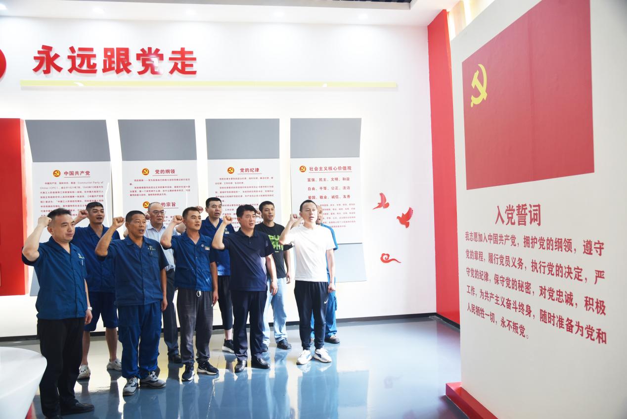 会议最后,参加座谈会的退役军人代表面向党旗,重温了入党誓词。铿锵有力的誓言,彰显了永跟党走、再立新功的坚定信念。