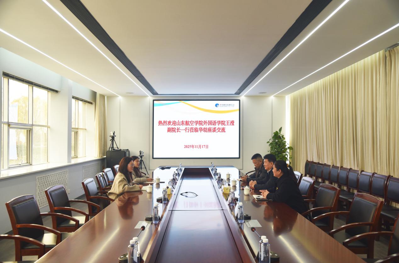 座谈会上,王滢介绍了山东航空学院外国语学院的师资队伍建设、学科特色以及人才培养成果。孙玉涛围绕华纺的市场战略布局、人才引进需求以及企业内部人才培养与发展机制进行了系统阐述。随后双方围绕共建学生实习实践基地、开展企业员工外语应用能力提升培训等方面交换了意见,并就当前企业高质量发展所需的复合型、国际化人才需求特点进行了交流。