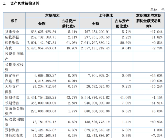 中建信息货币资金本期期末余额为6.37亿元,占总资产5.11%;应收账款76.01亿元,占总资产61.03%;短期借款54.52亿元;长期借款3.58亿元。