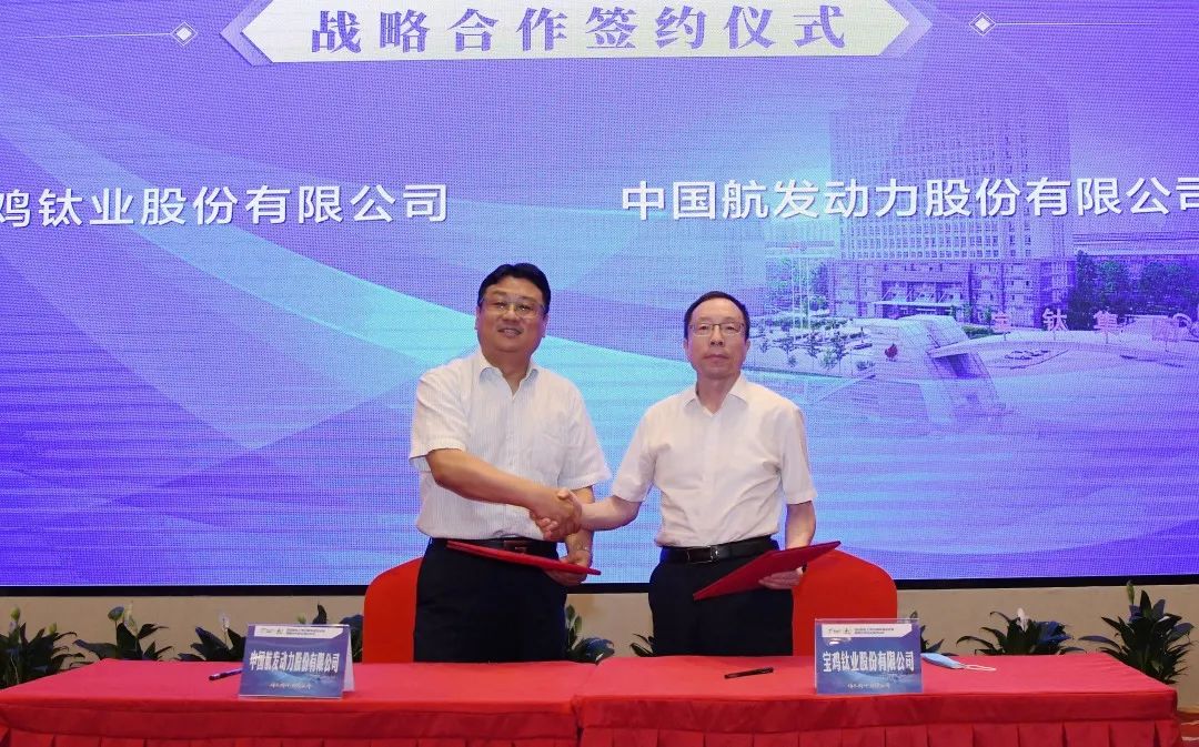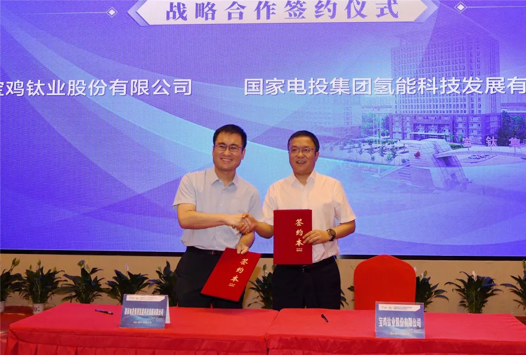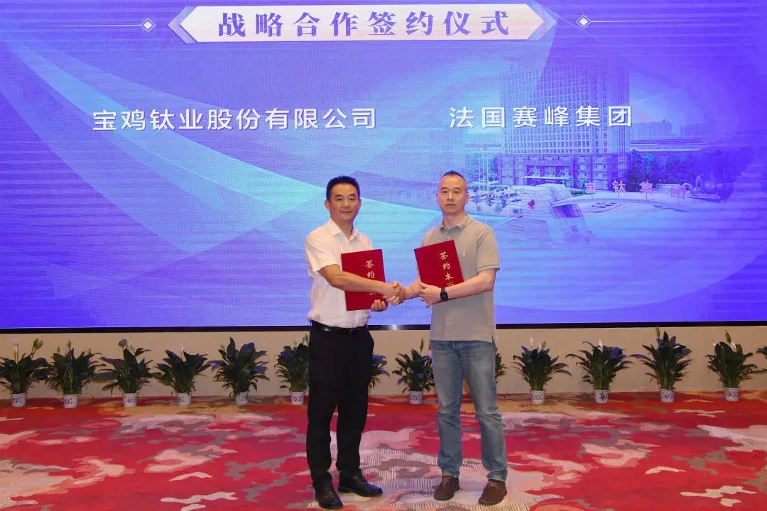 会上,与会人员集体观看了宝钛股份上市20周年宣传片。中国航发动力股份有限公司副总经理沈鹏与宝钛股份副总经理何书林,国家电投集团氢能科技发展有限公司宁波绿动燃料电池有限公司总经理李鹏飞与宝钛股份副总经理容耀分别上台,签订了战略合作协议。由于疫情原因,法国赛峰集团总部提前与宝钛股份进行了视频签约,并安排赛峰集团亚洲区供应链经理周寿波与宝钛股份外贸部主任张杰现场交换了签订的协议。