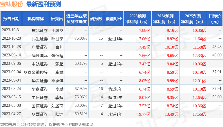 以下是详细的盈利预测信息: